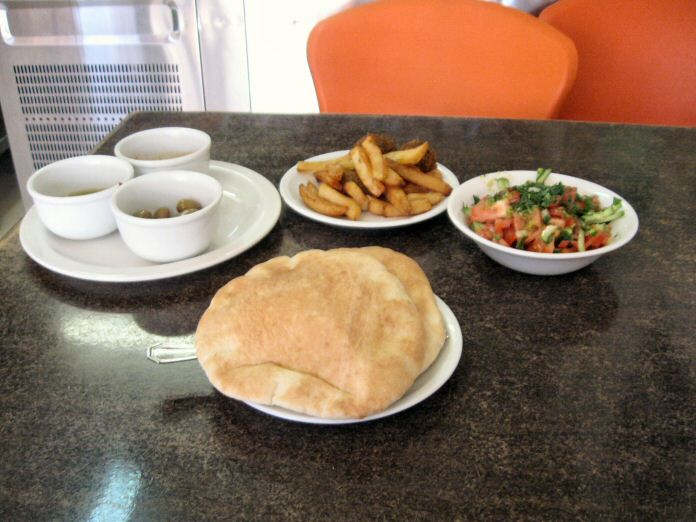 קשה, אגב, לומר אותו דבר על הצ'יפס, הפלאפל והסלט, שמוגשים אל השולחן רגע לפני החומוס ודקה מרגע ההזמנה (וזה לטובה כמובן), אבל לא ממש מזכירים את הקלבוני ההוא ובאופן כללי טובלים בבינוניות. 33 ש"ח בשביל כל זה, פלוס זיתים ורטבים ובקבוק מים מינרליים, זו לא עיסקה רעה – רק שהיא כנראה העיסקה היחידה, כי לא הציעו לי לוותר על משהו.