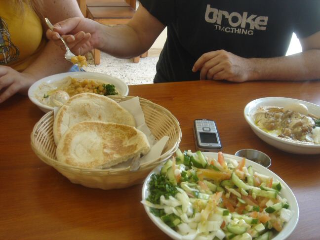 מצד שני, הגענו למקום ללא מצרך חשוב אחר שכדאי להצטייד בו לפני שנוחתים בחומוסיה: רעב. כלומר, חוץ מאילן שממילא הולך ממקום למקום כשאינפוזיה של בהדונס תקועה לו בווריד. זוגתי ואנוכי, עדיין עם קורי שינה, חשבנו שאולי יהיה קצת מוקדם לנו בשביל חומוס ולכן הזמנו מנה אחת לשנינו. בסופו של דבר הזמנו עוד מנה, אחרי שהזוגת – ששכחה שהיא לא רעבה ולא משתגעת על חומוס – רצתה עוד.